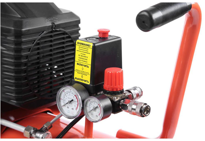 - Чтобы переместить компрессор, просто прокатите его на колесах.