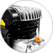 - Картер двигателя с охлаждающими ребрами не перегревается. Аппарат сохраняет высокую производительность.