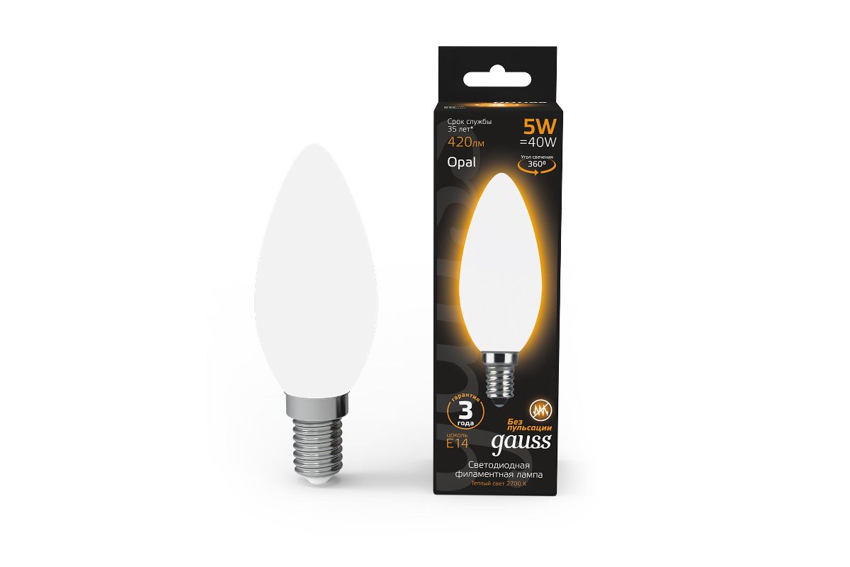 Лампа Gauss LED Filament Candle OPAL E14 5W 2700К 1/10/50