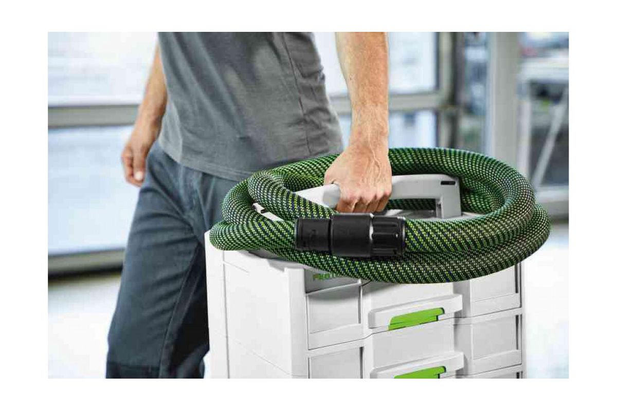 Прочная, гладкая наружная оплётка предотвращает зацепление всасывающего шланга. Расположенный внутри, очень эластичный всасывающий шланг. Конусная форма (27 мм на 32 мм) для оптимальной интенсивности всасывания. Всасывающая муфта CLEANTEC надёжно соединяет шланг и электроинструмент с помощью баойнетного замка.