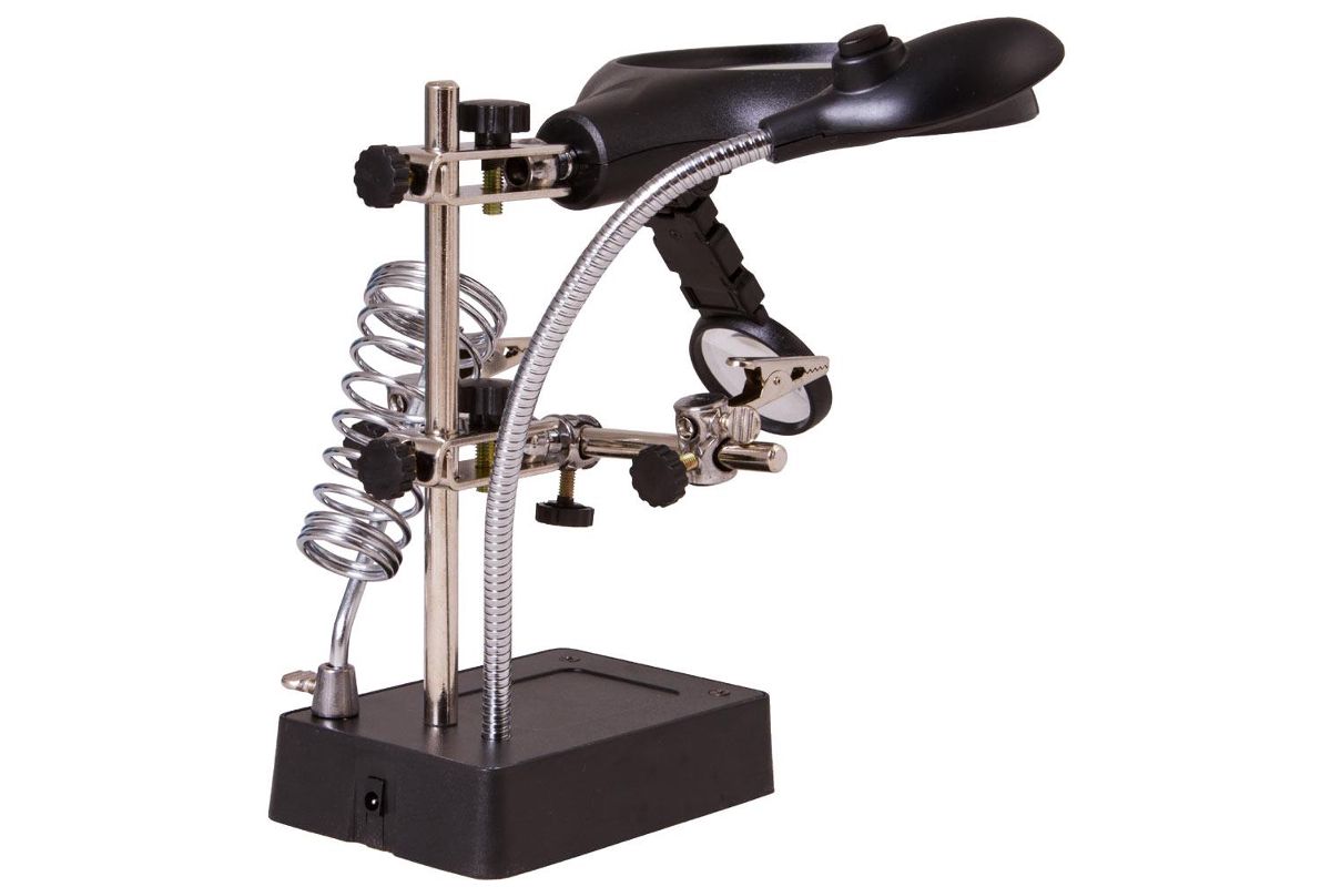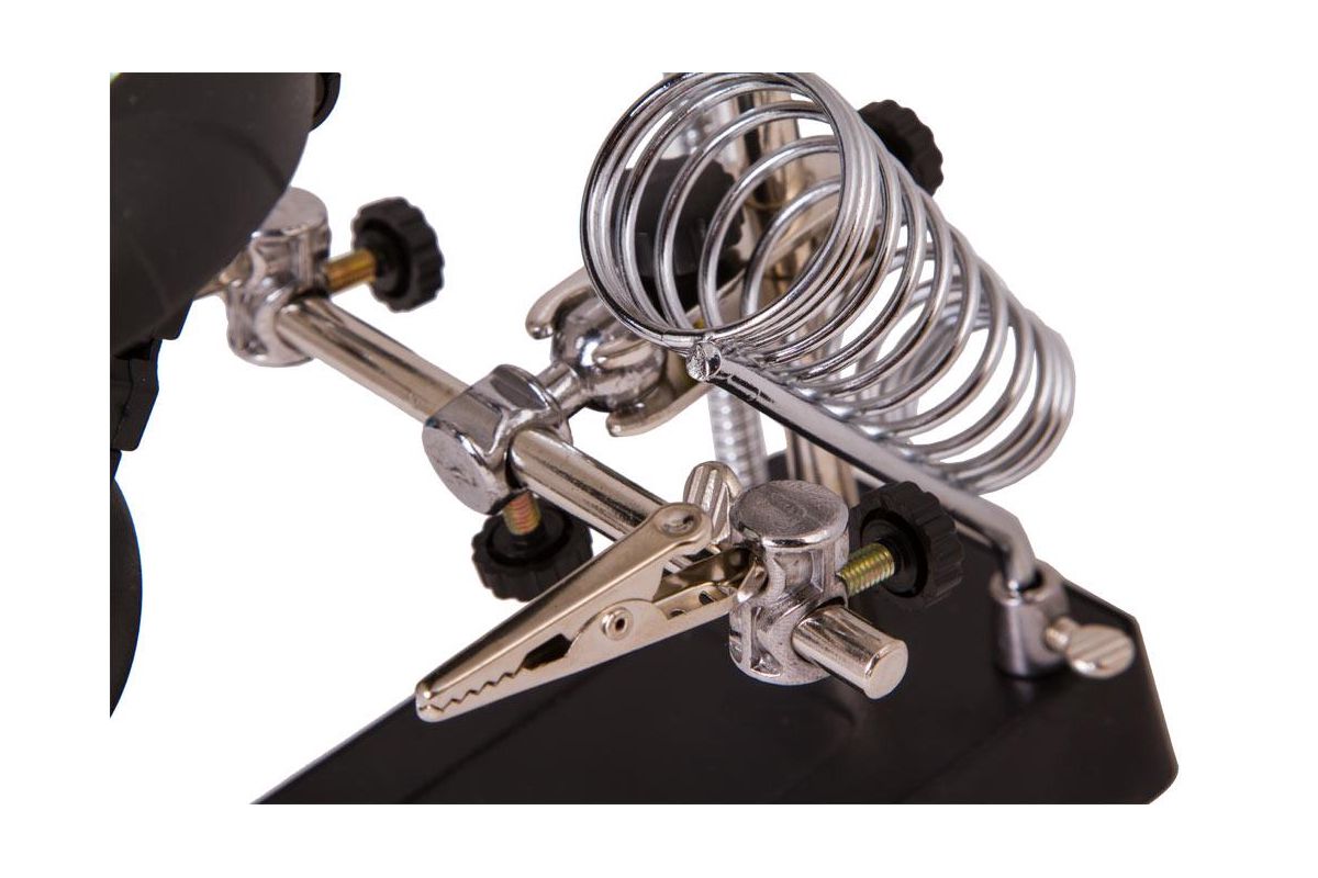 - Для работы с печатными платами или масштабными моделями имеются съемные держатели «третья рука». С их помощью необходимый предмет надежно фиксируется в одном положении, что облегчает длительную работу с ним;