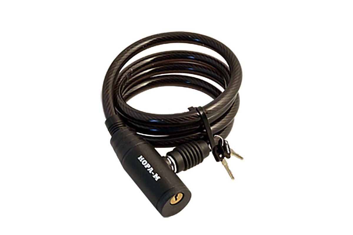 Стальной трос, заключенный в пластиковый кожух, и оснащенный замковым механизмом.